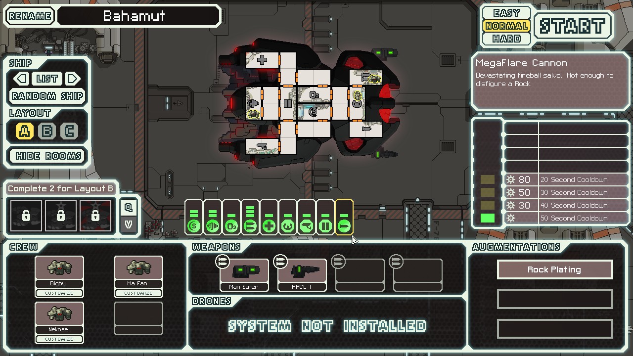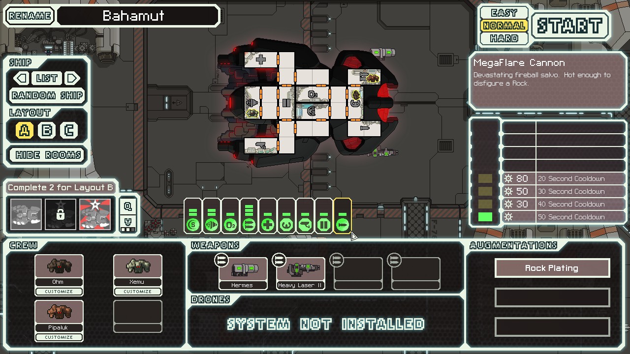 -MegaFlare Cannon: Shoots 5 fireballs, pierces 2 shields, deals 1 damage + additional crew damage (60 total) and high fire chance. No fear of reflect.